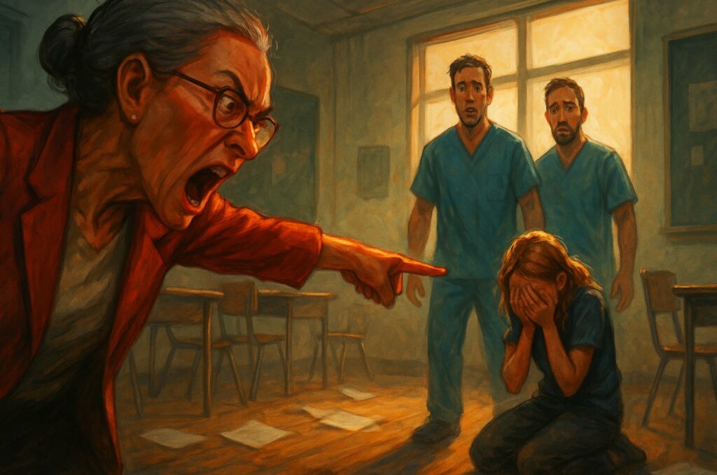 Líný učitel: V popisované situaci nejde o jednorázovou chybu v oslovení, ale o opakované nerespektování identity žákyně v kombinaci se zneužitím mocenské převahy pedagogů. Žákyně několikrát jasně a přiměřeně uvedla, jak se jmenuje a jaké oslovení používá, přesto je i nadále oslovována jiným jménem, a to dokonce v situaci, kdy je za tuto opravu trestána (posílání za dveře, vyřazení z komunikačního kruhu). Komunikační kruh, který má být bezpečným prostorem pro sdílení toho, „co komu vadí“, je použit v rozporu se svým smyslem: dítě je po sdělení oprávněné výhrady vyloučeno z aktivity. Tím se podkopává důvěra ve školu jako prostředí, kde má žák právo hlasu, a posiluje se klima strachu a podřízenosti. Typické pro Adamcovou je právě využití jiných pedagogů jako drábů a vyhazování ze třídy. Další postup vedení situaci dále eskaluje. Veřejné komentování údajné „nemocnosti“ žákyně a její potřeby asistenta před třídou je v rozporu s ochranou soukromí i profesní etikou, protože zdravotní stav žáka a podpůrná opatření nemají být předmětem hodnotících prohlášení před vrstevníky. „Kabinetní rozhovor“ tří pedagogů s jedinou žákyní, provázený křikem, nadávkami, opakovaným oslovováním nesprávným jménem a fyzickým kontaktem, představuje z odborného hlediska krajně nevhodný způsob řešení konfliktu, který je žákem vnímán jako psychický nátlak. Uzamčení žákyně v místnosti do příjezdu záchranné služby a její následné vykázání ze školy pak pokládá závažné otázky jak z hlediska ochrany důstojnosti a osobní svobody dítěte, tak z hlediska souladu postupu školy se školským zákonem a vnitřními předpisy. Události nejsou bohužel ojedinělý exces, ale vzorec jednání, který je na místě systematicky prověřit ze strany zřizovatele a dozorových orgánů. To, že toxické prostředí se dotýkalo nejen dětí, ale i dospělých, ukazuje další svědectví pedagoga.