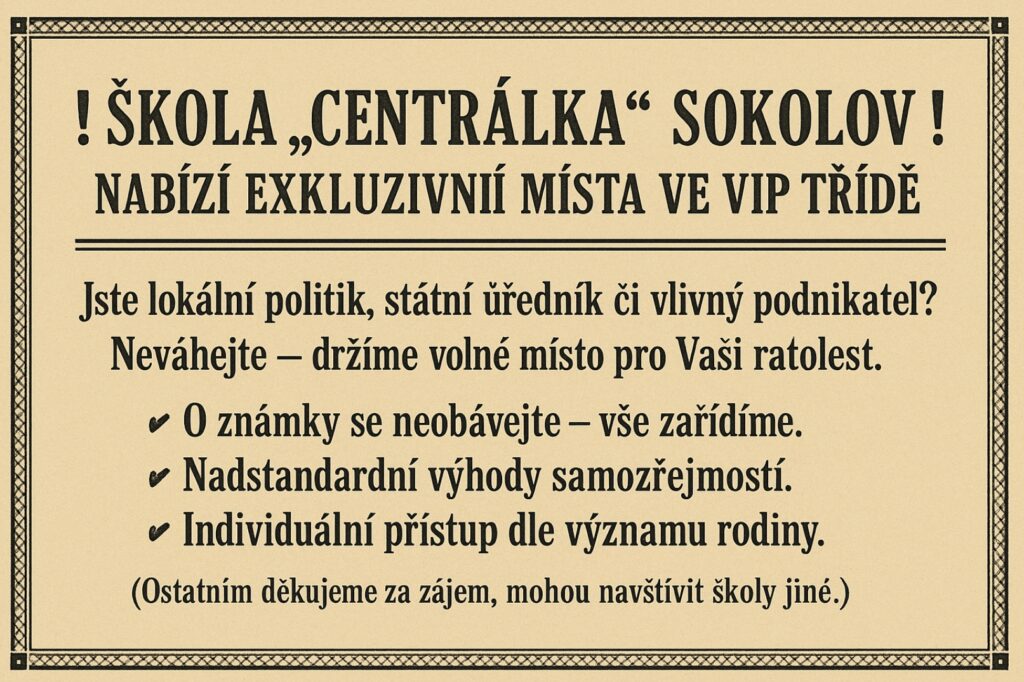 Můj článek o současných poměrech na Základní škole Sokolov, Rokycanova 258 zvané „Centrálka“, kde je ředitelkou Petra Šišková, vzbudil pochopitelně rozruch především v Sokolově, což je pochopitelné. Škola se okamžitě rozhodla jednat a máme tu změnu ve školské radě: místo toho, aby za rodiče ve trojčlenné radě seděla učitelka a podřízená Šiškové, je tu náhle jiná osoba. Nu, co…