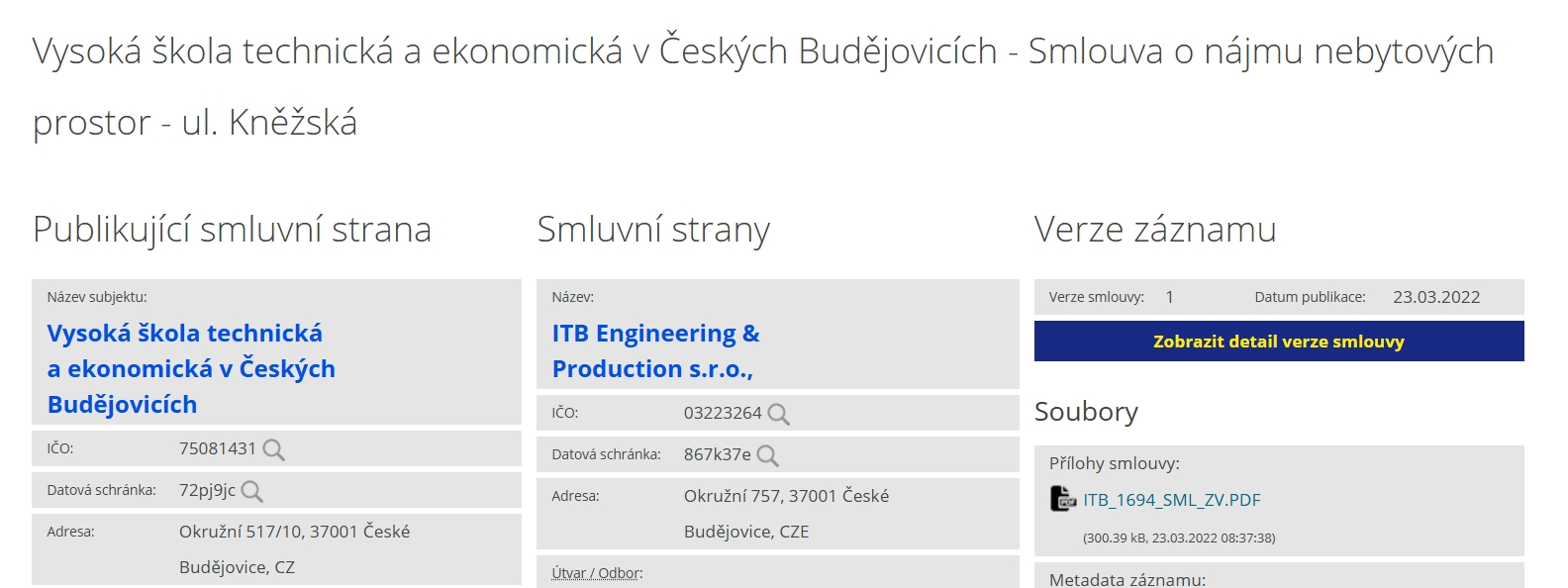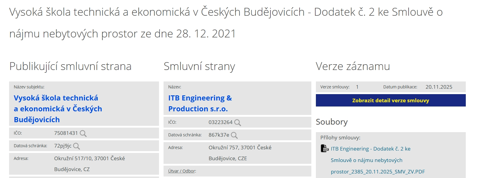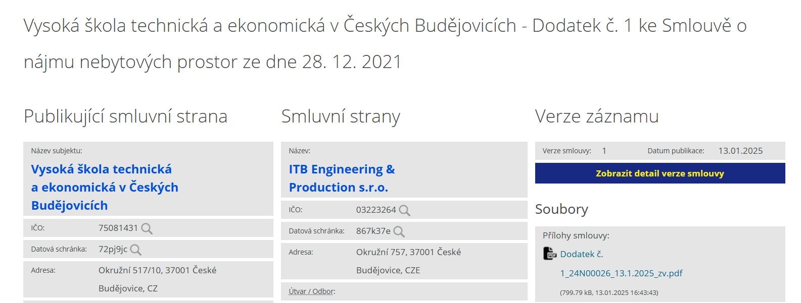 Kauza pronájmu budovy v Kněžské ulici je učebnicovým příkladem toho, jak z veřejné instituce udělat dojnou krávu financující soukromé podnikání lidí, kteří jsou s ní přímo propojeni. A dělá se to s takovým klidem, jako by šlo o běžné provozní výdaje za toner do tiskárny. Abychom pochopili celý obrázek, musíme začít u původní nájemní smlouvy. VŠTE si pronajala celou budovu o ploše 556 m² podle této původní nájemní smlouvy (bez dodatků) 145 00 Kč/měsíc, tedy roční nájemné je 1 740 000 Kč, za pět let 8 700 000 Kč. Už to je suma, která vyvolává otázky: co přesně škola za takový peníz získává? A odpověď je nepříjemně jednoduchá – nic. Údajně mělo jít o coworking, Konfuciovu třídu, kurzy Univerzity třetího věku, kurzy celoživotního vzdělávání a výuku češtiny pro uprchlíky. Jenže web Centra celoživotního vzdělávání jasně uvádí, že všechny kurzy probíhají v areálu VŠTE, coworking nefunguje, žádná místnost není veřejnosti k pronájmu a Konfuciova třída je jen kulisa. Jinými slovy: VŠTE si pronajímá budovu, kterou nevyužívá, ale kterou platí, jako by šlo o klíčový provozní objekt. Konkrétně tedy VŠTE, kde kralují Vochozka, Rowland a Vrbka si pronajímá budovu od ITB Engineering & Production s.r.o., která patří trojici Vochozka, Rowland a Vrbka.
