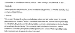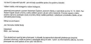 Přiložené obrázky jsou z webu školy, kde bývalý ředitel Harmata odpovídal na otázky podle paragrafu 106.